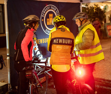 Newbury Road Club joined forces with Newbury Velo and West Berkshire Spokes to represent the entire county of Berkshire. 47 excited riders gathered in Newbury’s Market Square with bikes and clothing covered in lights, ready to make their mark on the town.